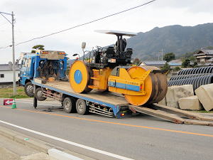 | ローラーが到着 | ゆっくり下す | いよいよ仕事開始 |