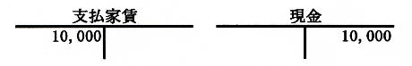 【例3】今月分の家賃¥10,000を現金で支払った。