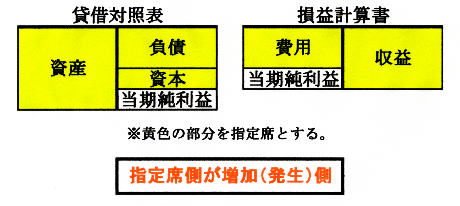 そうすると、「指定席側が増加(発生)側」と一度に憶えることができます。もちろん、減少(消滅)側はその反対側です。