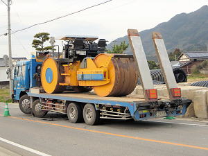| 下水道管埋設工事 珍しいいろいろな車両が来る | ||