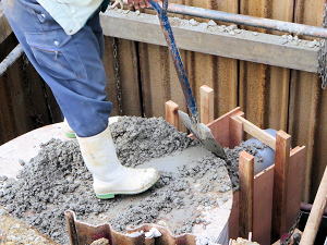 | やっと定位置につく | 繋ぎ目を作る | コンクリートを流し込み繋ぎ目を固定する |
