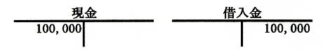 現金という資産が¥100,000増加し、借入金という負債が増加した。