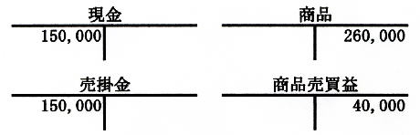 現金という資産が¥150,000、売掛金という資産が¥150,000増加し、商品という資産が¥260,000減少した。差額は商品売買益という収益(¥40,000)の発生である。